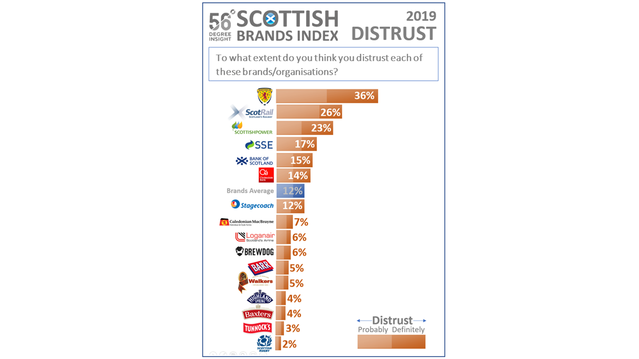 As well as being asked the extent to which they felt they could trust each brand, respondents were also asked about brand awarenesss, performance, likelihood to recommend, how innovative they were, their potential for future success and the extent to which they portrayed Scotland in a positive light.